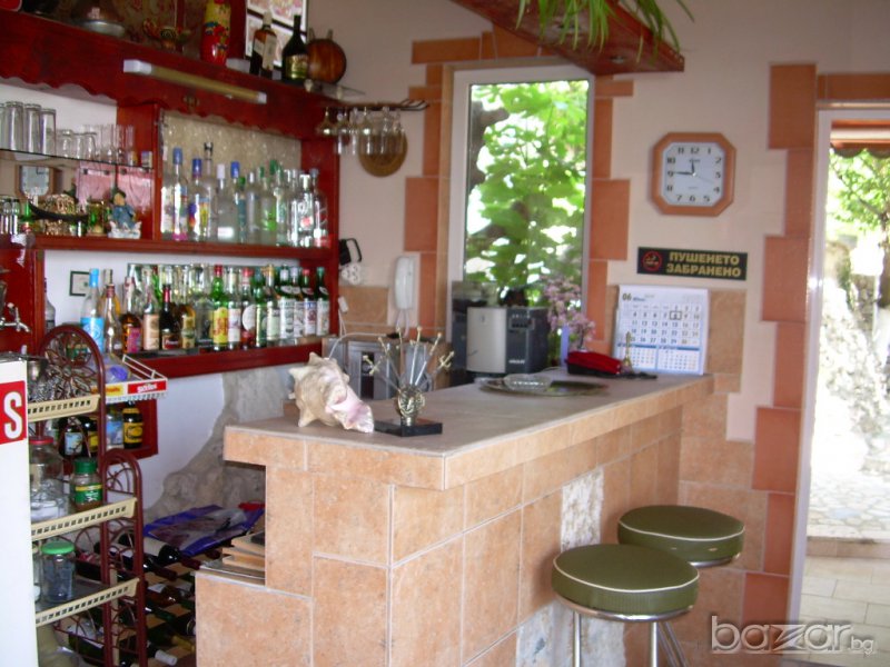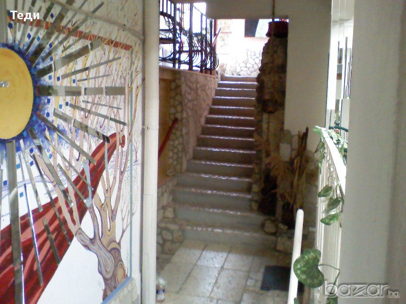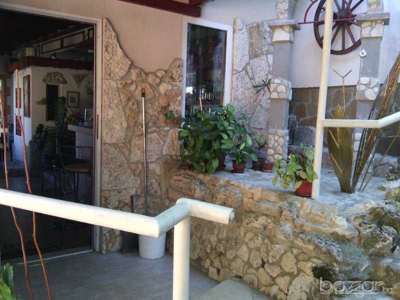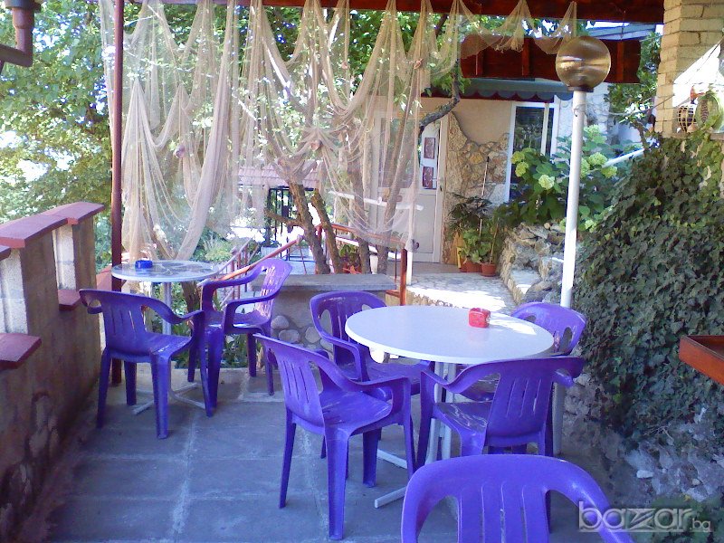Къщата се намира на 0,5 км от морето, на 250 м от Националният парк "Златни пясъци" и на 8 км от град Варна /автобуси има на 10 мин/. В близост се намира Международния дом на журналистите и на 200 м от Варненски свободен университет. Разполага с 5 стаи-всяка със санитарен възел и тераса, 3 двустайни апартамента, 1 мезонет, кафе-бар и летен бар, има и 10 бани. Всяка стая е обзаведена и декорирана в различен стил. Стаите са с панорама към морето. Двора е 650 кв.м. с много овощни дървета. РЗП 700 кв.м. Може и замяна за къща в Пловдив или София.