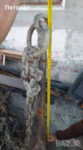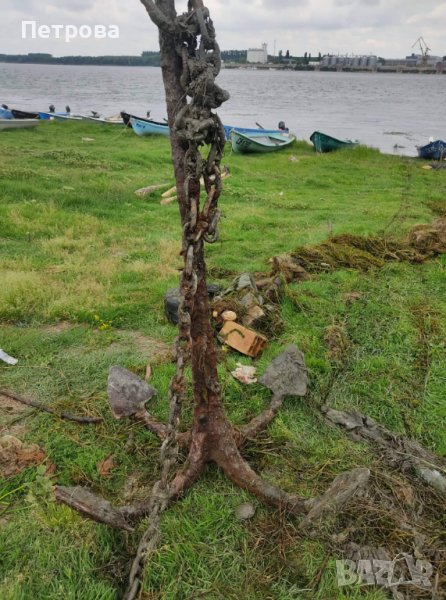 Старинна котва за кораб с верига около 50 метра. Тежина около 200 кг.