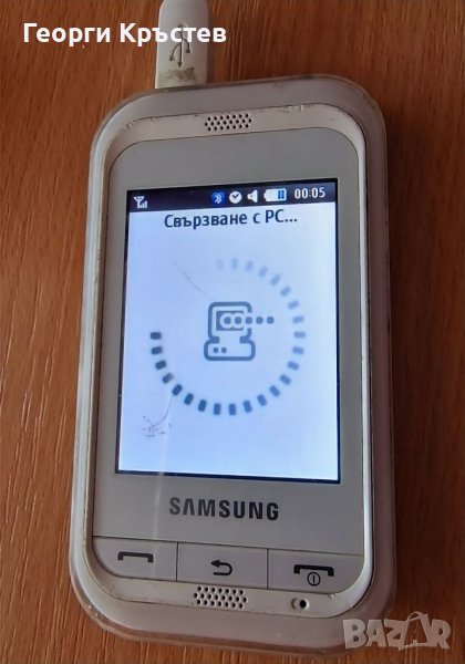 Samsung C3300k - добър външен вид, но няма задно капаче, като се сложи на зарядно, телефона се зарежда, но изписва свързване с PC, може би е някаква настройка, тъча е ОК, слушалката и микрофона са ОК, батерията не е пробвана, но би трябвало да е ОК, има БГ меню, без зарядно.