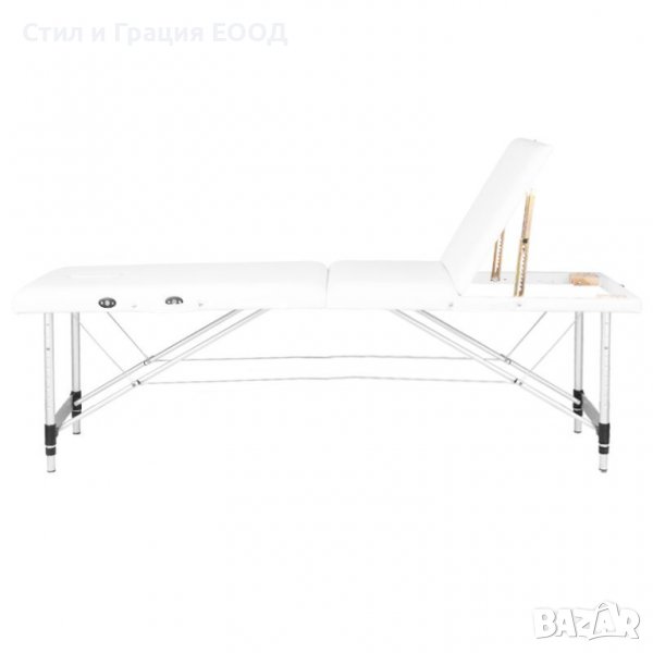 Преносима трисекторна кушетка Komfort 186 х 59 х 62/80 см - бяла/черна/сива