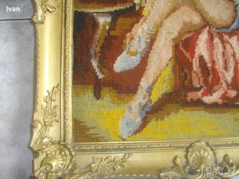 Размер на гоблена видима лицева част без рамката -ширина 385 мм, дължина - 480мм.