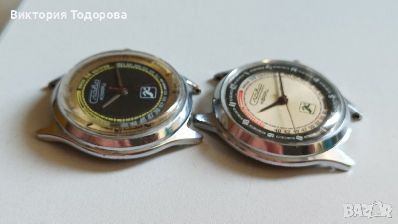 Левият часовник с черния циферблат е със знак за качество на задния капак и е с цена 70 лв.