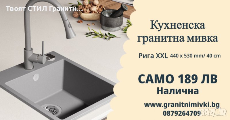 Нашият магазин освен високо качествени Кухненски Мивки от Гранит предлага и атрактивни кухненски сместители от хром или гранит, съответстващи на цвета на мивката, както и други аксесоари, които улесняват работата и повишават естетиката на зоната за миене,също съвпадащи дозатори за течност за миене на съдове. В нашия магазин можете да закупите и специализирани препарати за грижа за гранитна мивка, благодарение на които мивката Рига ще остане като нова за дълго време.