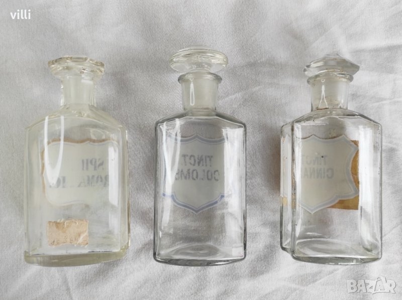 4 броя различни размери аптекарски шишета с шлифова тапа.