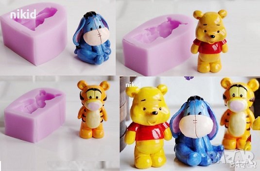 4 бр Мечо Пух Йори Тигър Прасчо силиконов молд калъп гипс кубчета форми гипсови имена → Обява 37034752