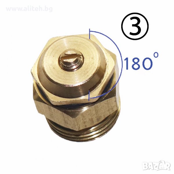3. Регулируема дюза за пръскане на 180°. Работно налягане 1-2 атм. Дебит от 80 до 590л/час. Обхват на пръскане до 4м. - 6,60 лв/бр