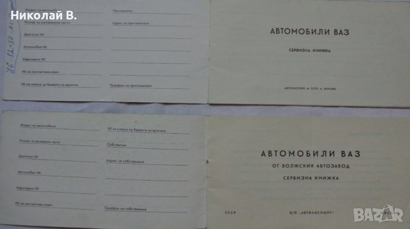 Продавам употребявани и попълнени но запазени ретро Сервизни книжки на Български език за ВаЗ 2101/2102 Лада Автоекспорт СССР Москва.