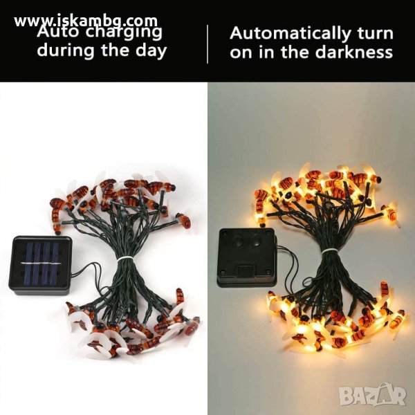 Малките светещи пчелички са изработени от прозрачен материал, а във всяка една от тях има LED лампа, която я кара да блести.Тялото на пчеличката е релефно оформено, а крилата разперени. Може да подредите конфигурация в зависимост от вашите нужди и предпочитания, която да променяте когато пожелаете да постигнете повече разнообразие.