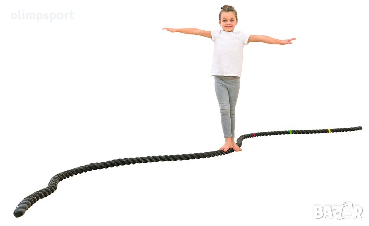 С това въже децата могат да играят и да се учат на баланс. За промяна на трудносттта на балансиране въжето може да се нагъне по пода. С дължината от 5 метра могат да балансират дори две деца едновременно.