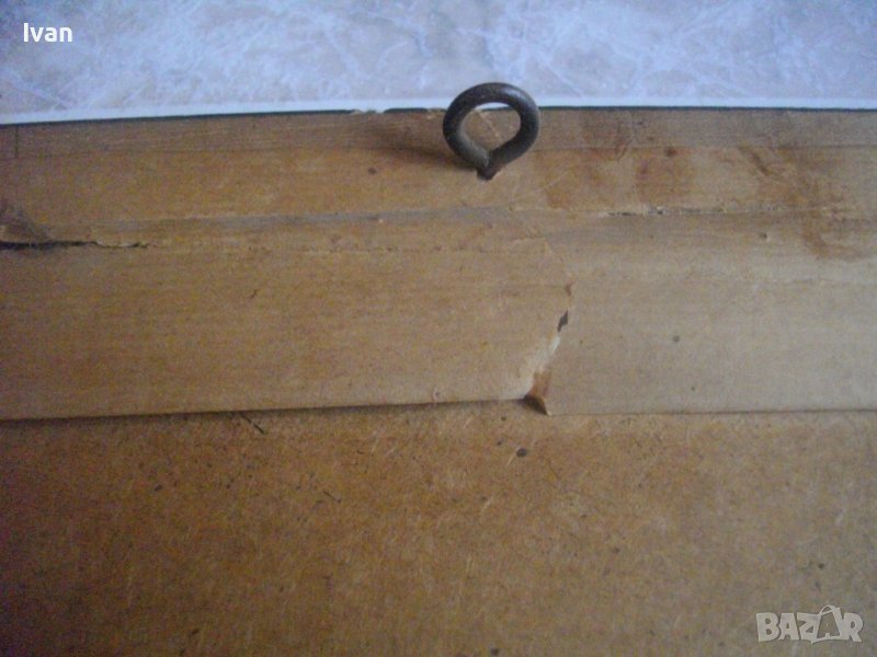 Отзад-гръб-шперплатова плоскост, с масивна метална кука за окачване.