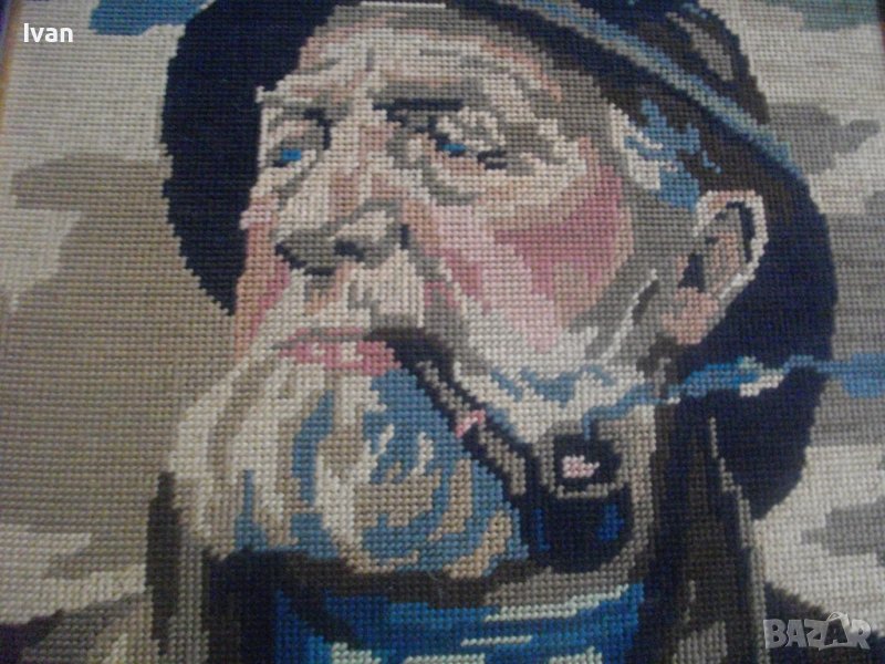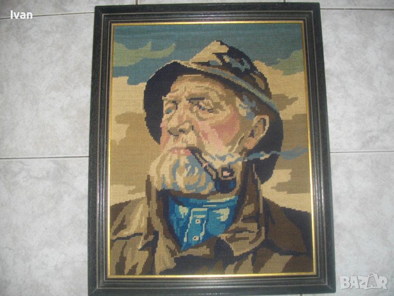 Нов Голям Гоблен-540х435мм-DMC-Ръчно Нашиван-Старецът с Лулата-Рамкиран-Холандия