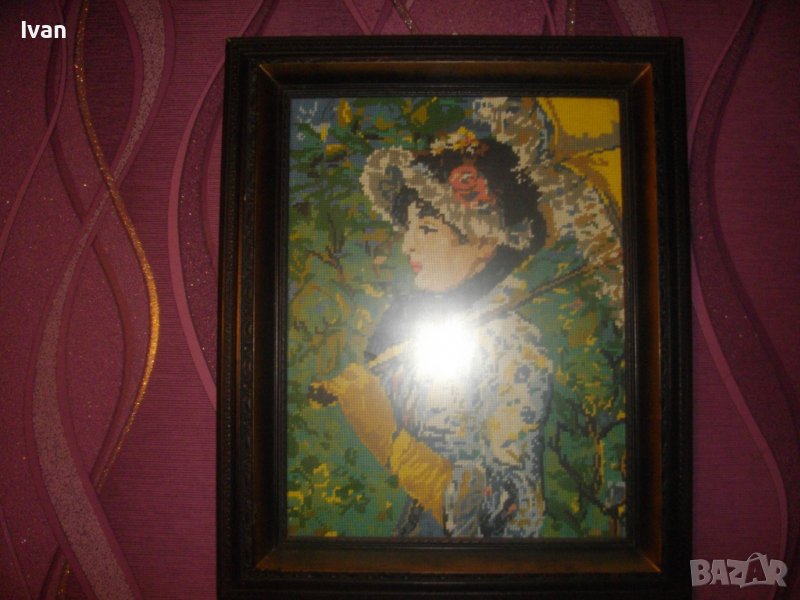 Дамата С Чадъра-Голям DMC Гоблен-580х480мм-Колекционерски-Рамкиран-Отличен