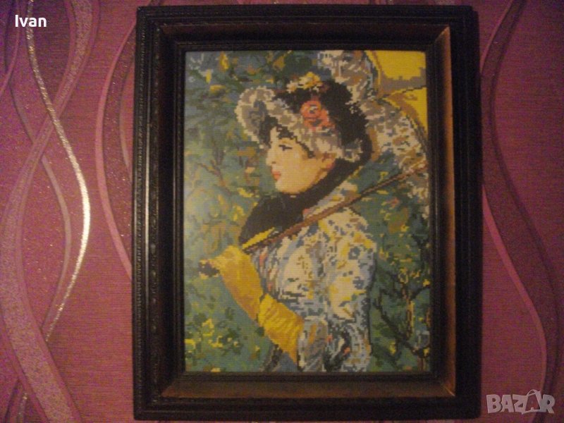 Голям почти нов гоблен,ръчно нашиван с DMC конци.