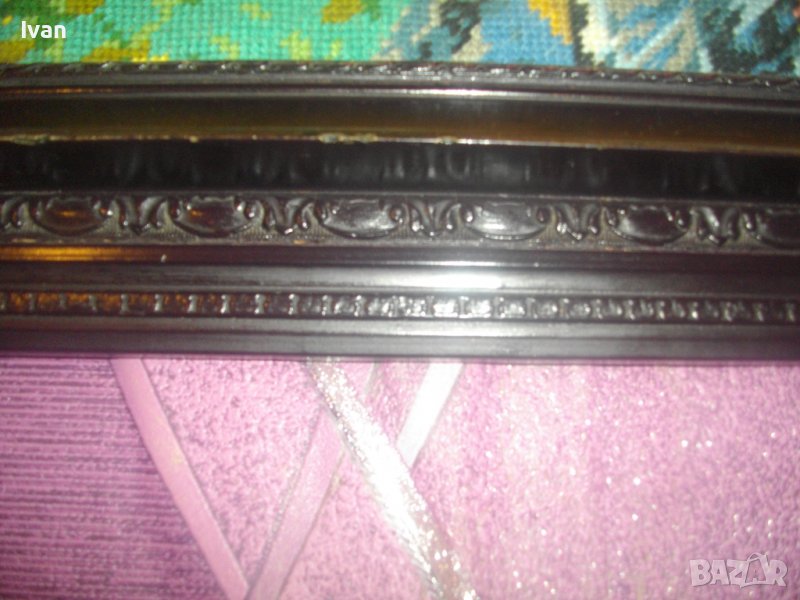 Рамкиран с масивна тежка рамка от дърво, байцвана и лакирана в черен нюанс.