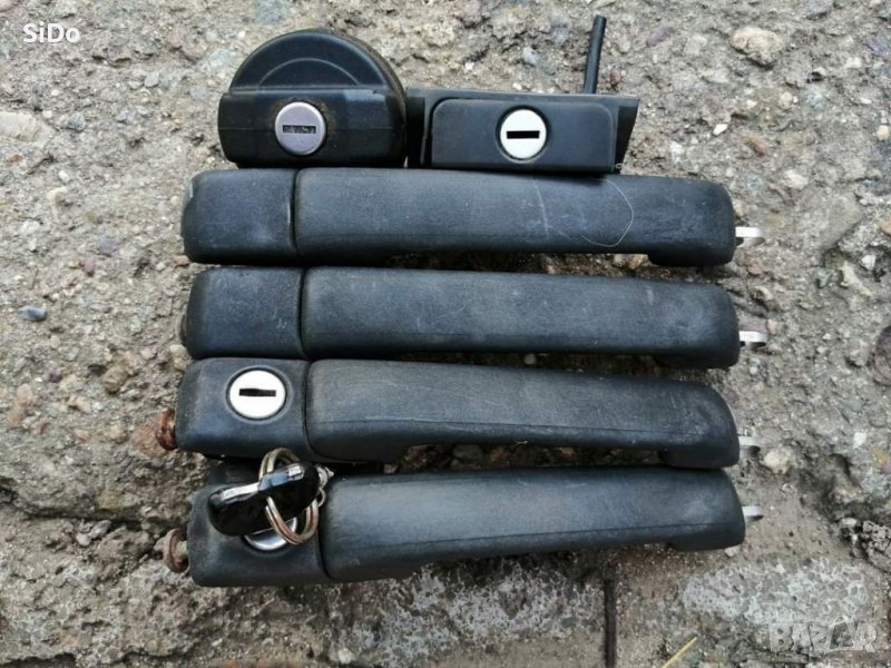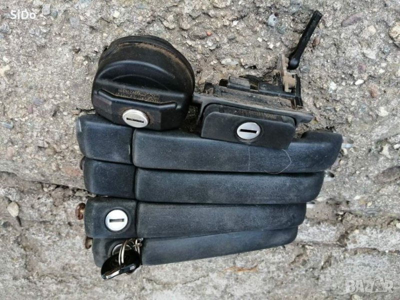 Оригинални 4 външни дръжки, бутон (с ключалка) за отваряне на багажника и капачка на резервоара с ключалка, и оригиналният ключ за откючване и заключване за Голф 3! Всики дръжки са в много добро състояние! Ключа е оригиналния , отключва предна лява (шофьорска страна), предна дясна (пасажерска страна) багажника и капачката на резервоара! Единствената дребна забележка е, че щипката на ключалката за багажника има отчупване от едната страна , но не е проблем да се монтира, видимо на снимката! Цена: 66€! За повече информация на ЛС или по телефона!