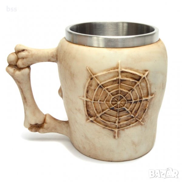 Стилна чаша от полирезин и метал - релефен череп "ни разбрал".
