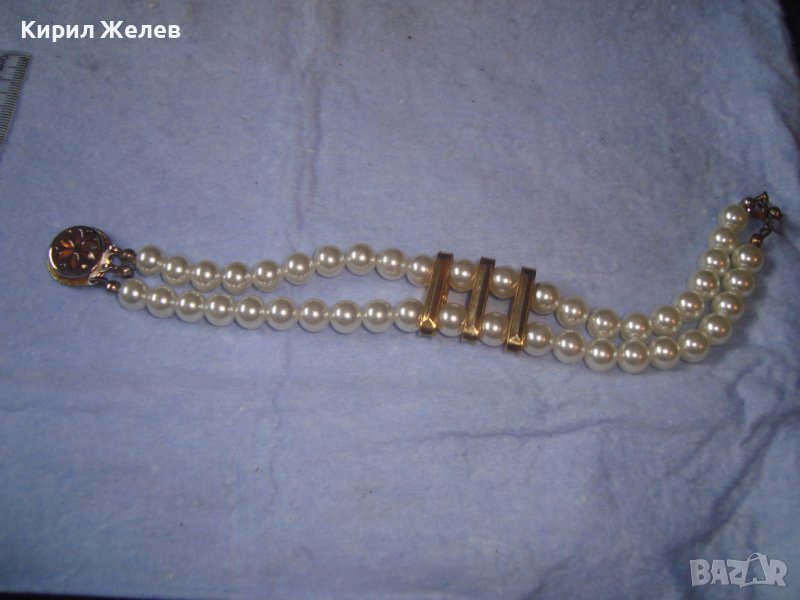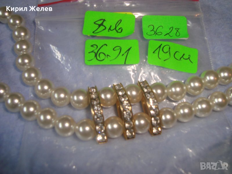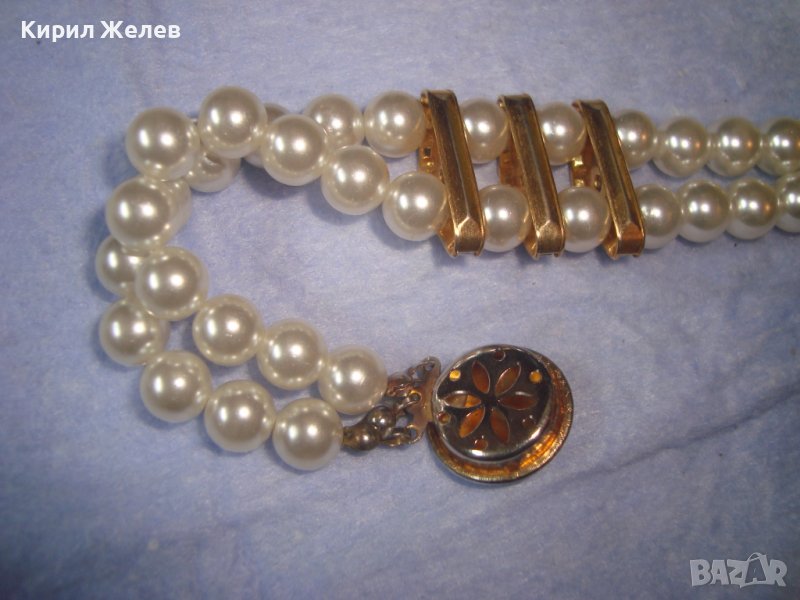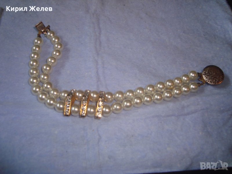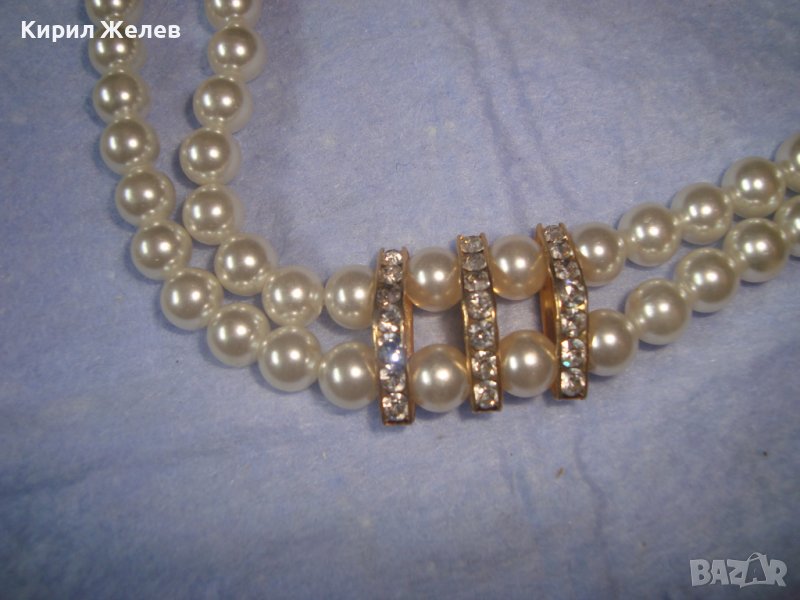 КРАСИВА ПЕРЛЕНА АРТ ДЕКО ВИНТИДЖ ГРИВНА с ФАСЕТИРАНИ КРИСТАЛИ и МЕСИНГ 3628