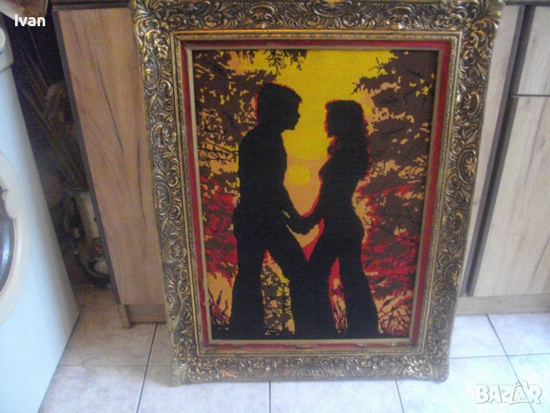 Пейзаж-двойка влюбени на фон на залязващото слънце.Цветовете са изключително наситени-окраската на нюансите са с реалистични и реални багри.