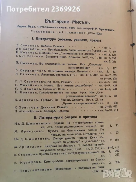 Българска мисъл,Год.1-6. Михаил Арнаудов. → Обява 37047690