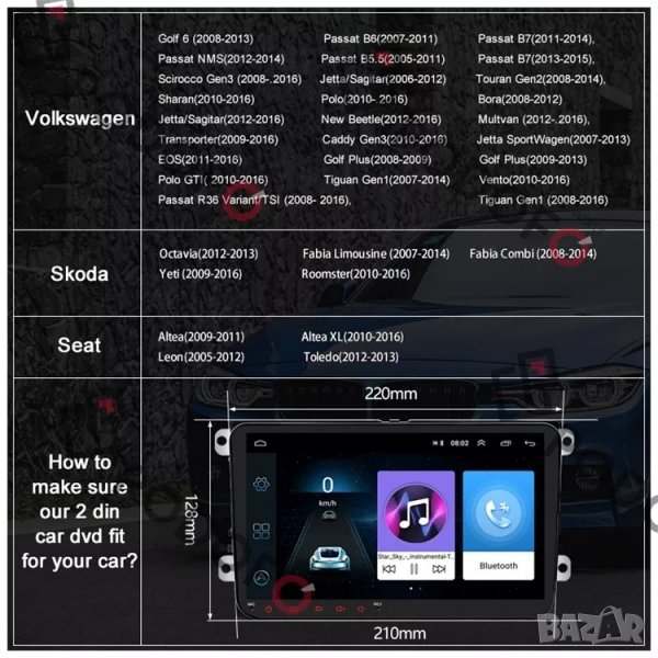 Мултимедия, за VW, плеър, двоен дин, навигация Volkswagen, Golf, Голф 5, Passat, Touran, Seat, Skoda
