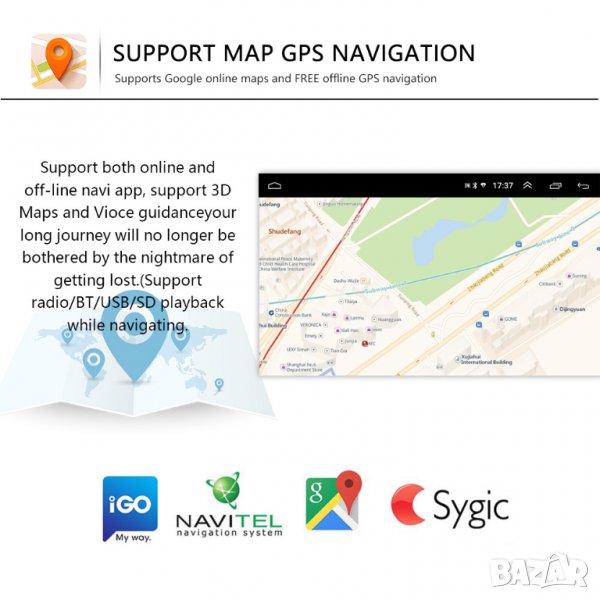 Поддържа всички навигации, съвместими с Android: IGO, WAZE, GOOGLE Maps и други