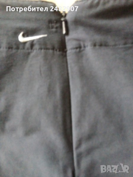 Дамски спортен панталон 7/8 "Nike" в тъмно синьо. Размер XS, с връзки и странично закопчаване с ципове от ляво и отдясно. Много запазен, почти не е използван, съдържа 96% найлон, 4 % еластан. Ширина на талията - 35 см, дължина от талията до долу - 78 см.