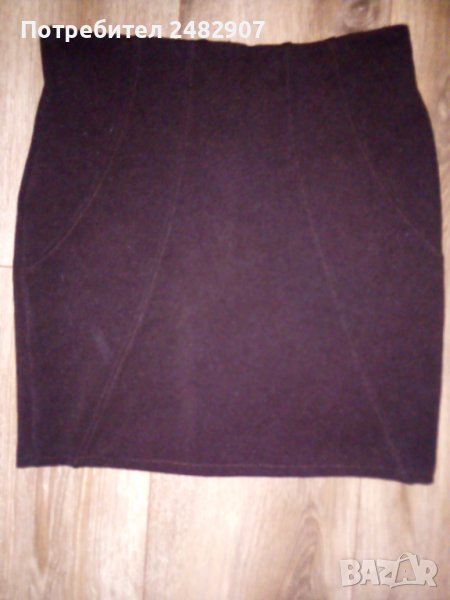Дамска пола в тъмно кафяво. Много запазена, размер XS. Съдържа 95% полиестер и 5 % еластан, закопчаване с цип в задната част. Ширина на талията - 34 см, дължина - 39 см.