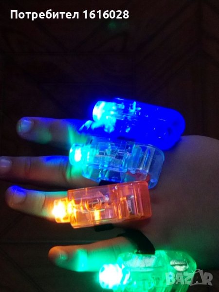 4.Налични едно пакетче с мини парти фенерчета,които се слагат на пръстите при танцуване,но могат и да се носят от децата закачени на раница,за да светят пребирайки се в тъмното,като светлоотразители.Цена 4 лв.