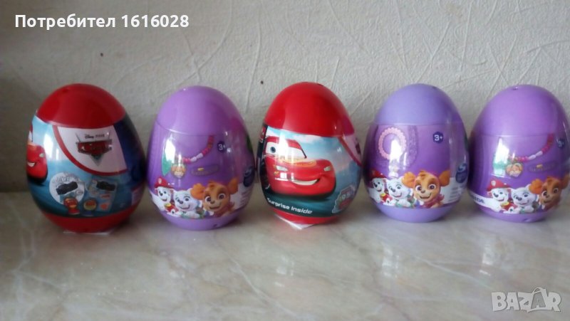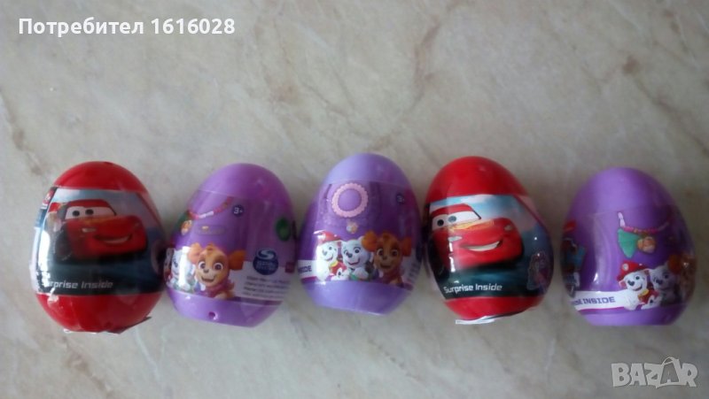 5.Налични яйца с изненади(гричнички,ключодържатели,фиби,стикери и др.)На Пес Патрул и Макуин.Цена 4 лв.за брой.