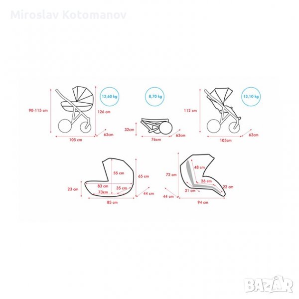 Бебешка количка Milu Kids Como с 3 коша → Обява 37053311