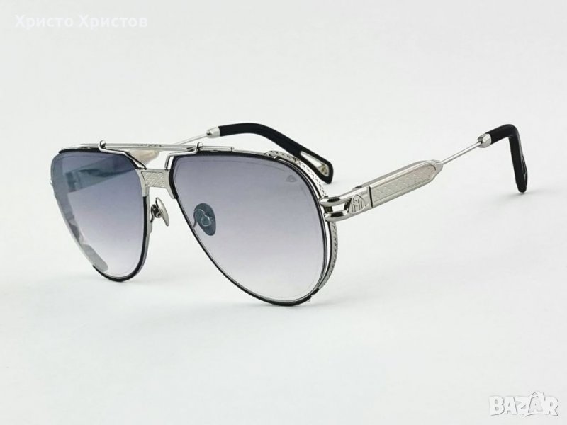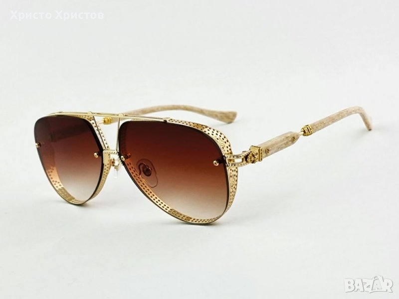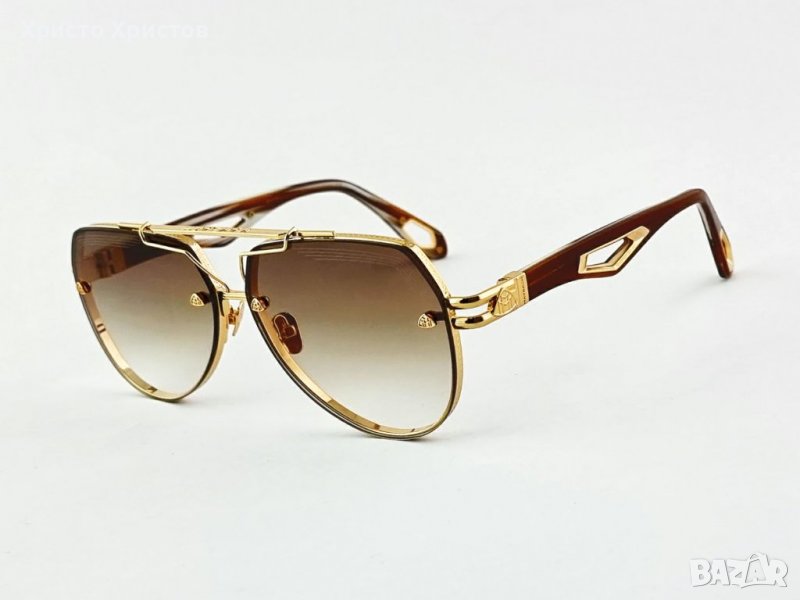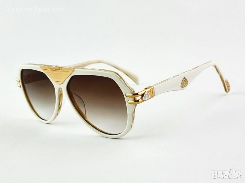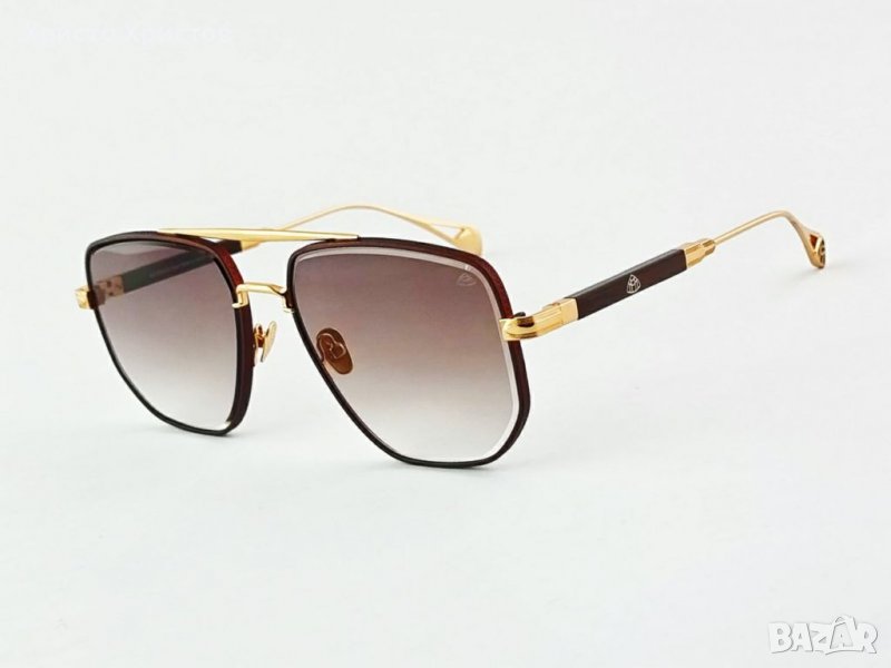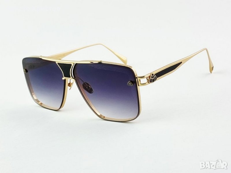 Луксозна серия слънчеви очила реплика Maybach, модерни, нормален размер, цвят златни, тъмно-сиви стъкла, пълна UV защита от 400nm, черна пластика, метал и кожа, олекотени, покритие против корозия и надраскване, кърпа за почистване, книжка и оригинален кожен калъф.