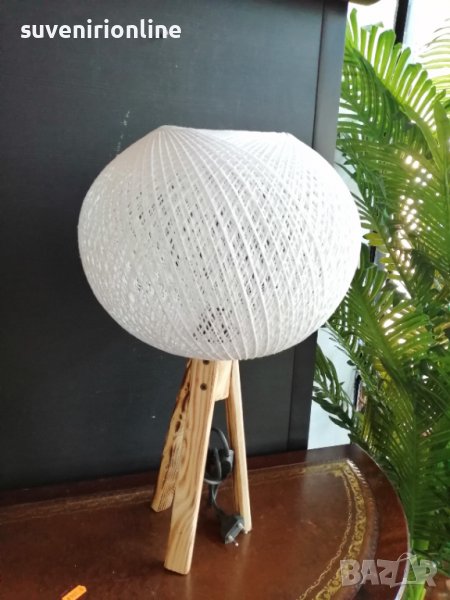 Модерен лампион с дървени крачета. Височина 53 см. Цвят бял.