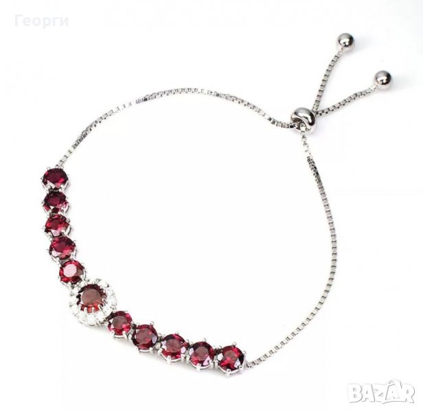 Изящна Красива и нежна дамска сребърна гривна с червни Гранати → Обява 37056569