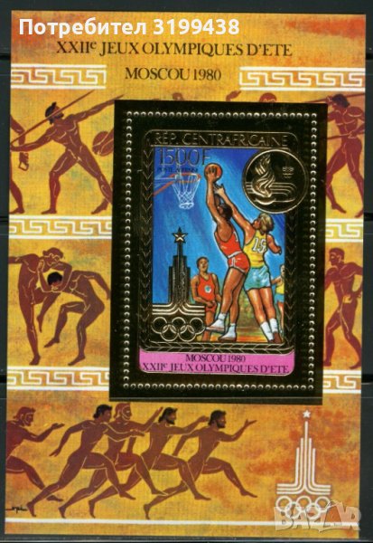 Чист блок Олимпийски Игри Москва 1980 от Централноафриканска република.
