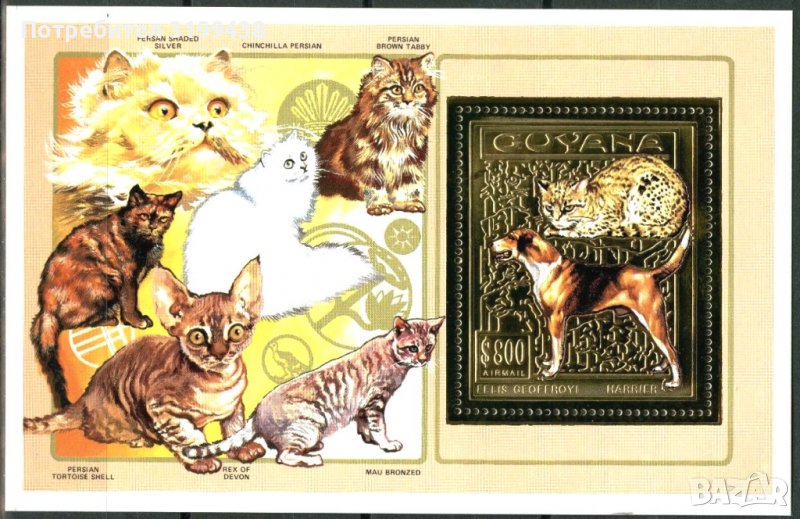 Чист блок Фауна Кучета и Котки 1993 от Гвиана, снимка 1 - Филателия - 37059949 1/1