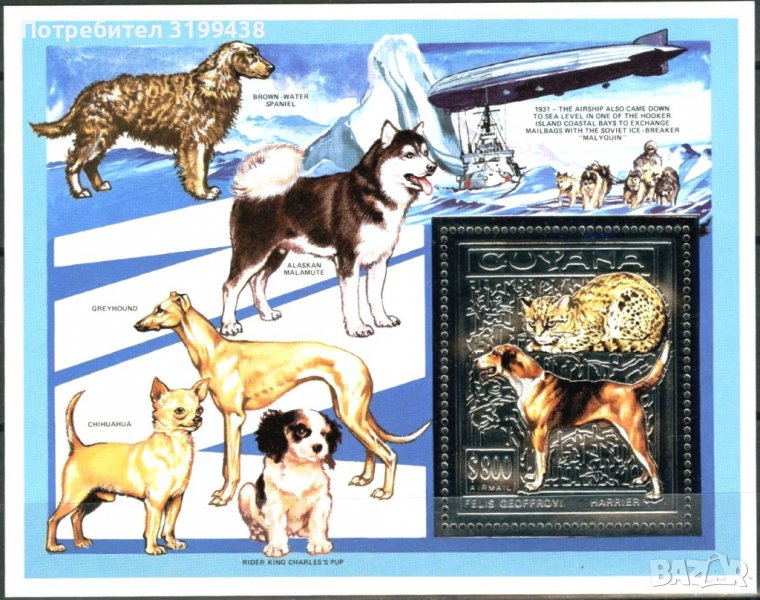 Чист блок Фауна Кучета и Котки 1993 от Гвиана.