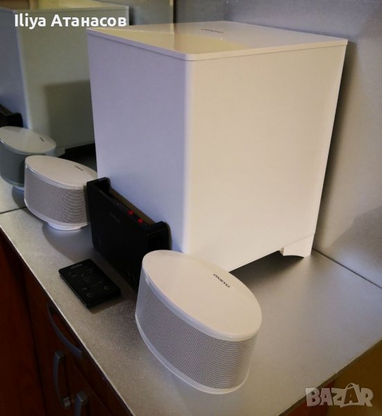 Onkyo LS 3200 2.1 аудиосистема 2 тонколони, субуфер, усилвател с вграден Bluetooth и дистанционно управление. Луксозна визия, отлично състояние.