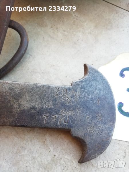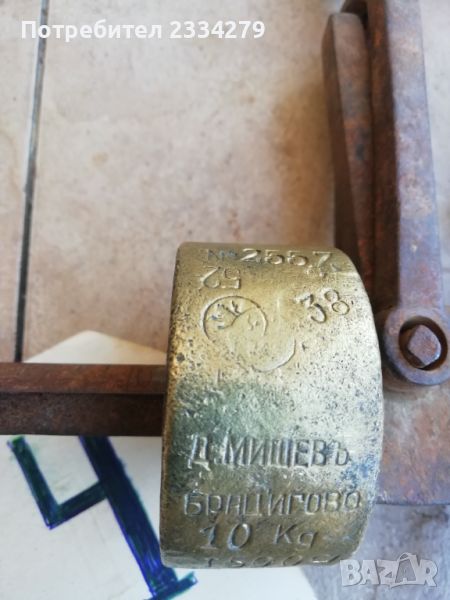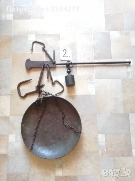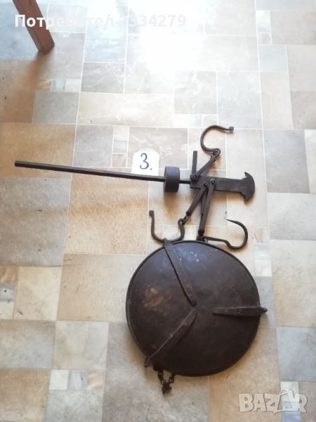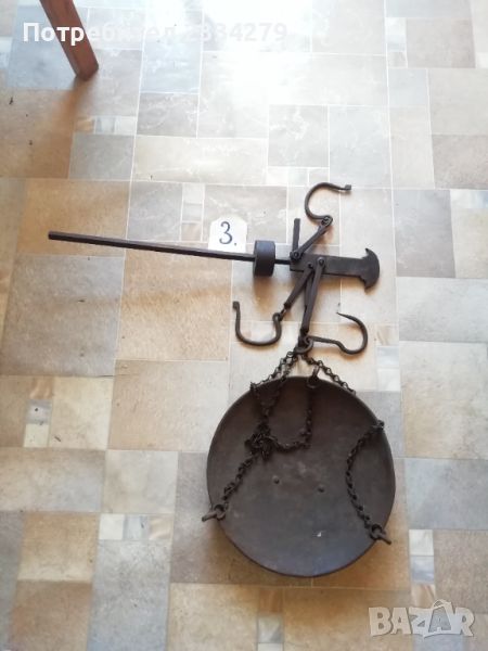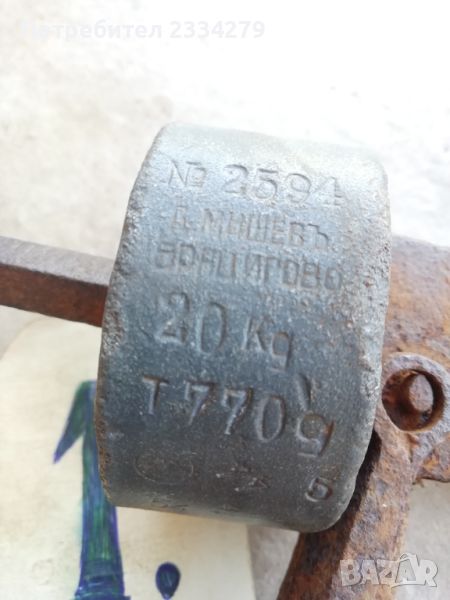 Стар кантар,,Паланза" N:1 ръчно изработен в работилница на майстор Д.Мишевъ гр. Брацигово през 1943год., тегли 20кг.,има наковани щемпли, цена 40лв.(има забележка на чинията). N:2 изработена 1941год. в Пловдивъ от В. Димитровъ, тегли 30кг., цена 70лв. N:3 паланза-кантар с щемпъл Сопот България, 20кг.,1942год.,цена 50лв.
