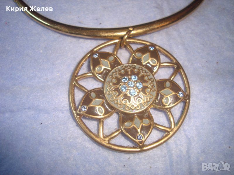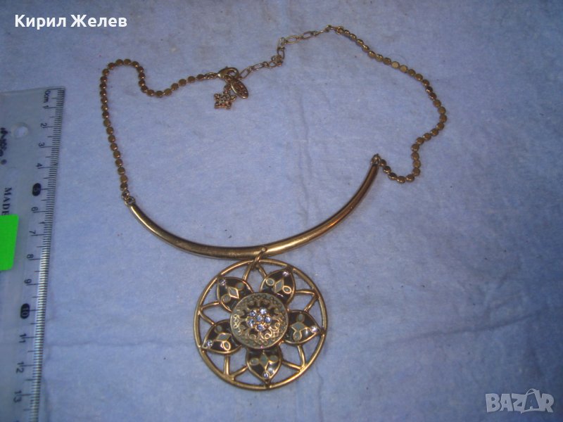 РАЗКОШНА ПОЗЛАТЕНА ДИЗАЙНЕРСКА БУТИКОВА МАРКОВА СКЪПОЦЕННА ОГЪРЛИЦА АРТ ДЕКО СТИЛ КОЛИЕ 27966