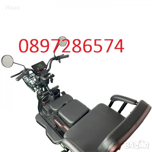 Предлагаме на Вашето внимание уникална двуместна триколка C1+ – без аналог на пазара.Триколката е с LED дисплей, три нива на скоростта, стопове, мигачи и габарити,LED фар.Предна и задна ръчни спирачки.Крачна спирачка.Голям кош за багаж.Триколката е с вградена втора седалка за допълнителен пасажер, като самата седалка се движи във височина, което създава удобство за нисък или висок човек.