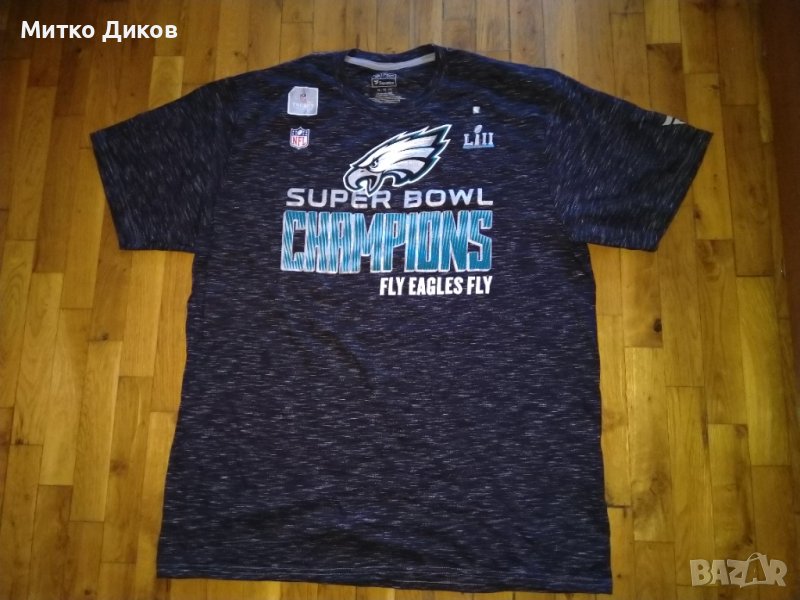 Тениска американски футбол Super Bowl LIII 2018г-New England Patriots победи шампиона на Националната футболна конференция Лос Анджелис Рамс с 13–3 маркова на ПРО ЛАЙН размер ХЛ-отгоре додолу-74см и подмишници-59см-в много добро състояние-изпращам по еконт-по спиди