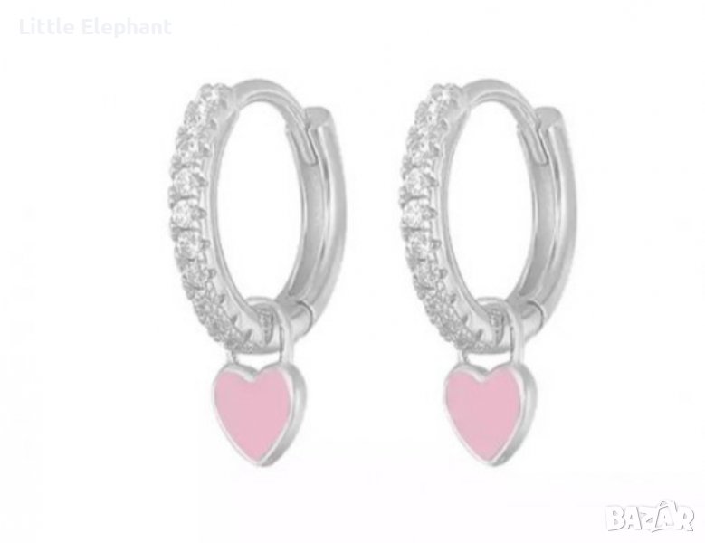 Сребърни висящи обеци "Summer hearts",pink,бранд/нови → Обява 37069110
