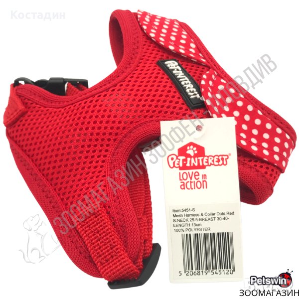 Нагръдник за Куче - с Якичка - с Точки - XS, S, M, L, XL - Червен/Бял цвят - Pet Interest