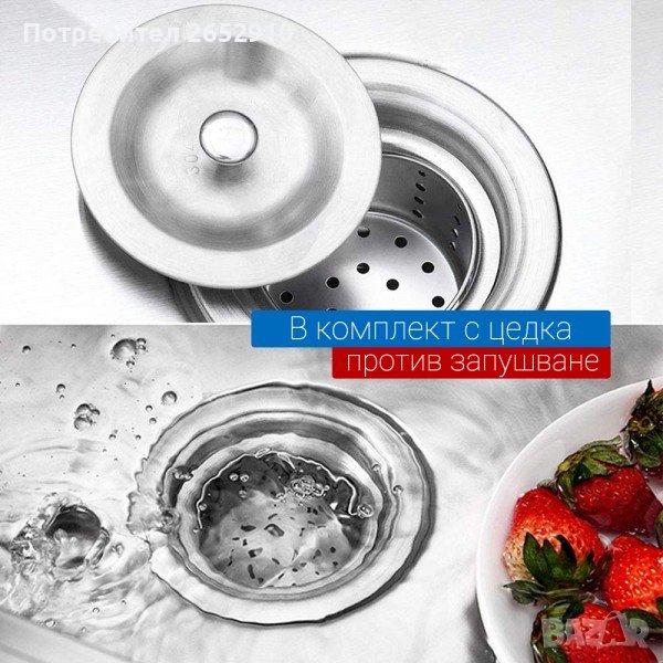 - в комплект със сифони, цедка с кошница и мека гофрирана връзка
