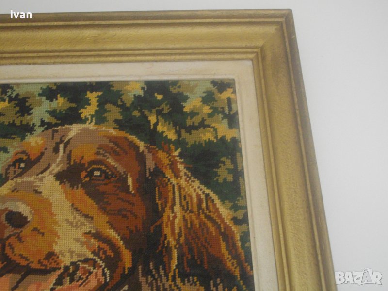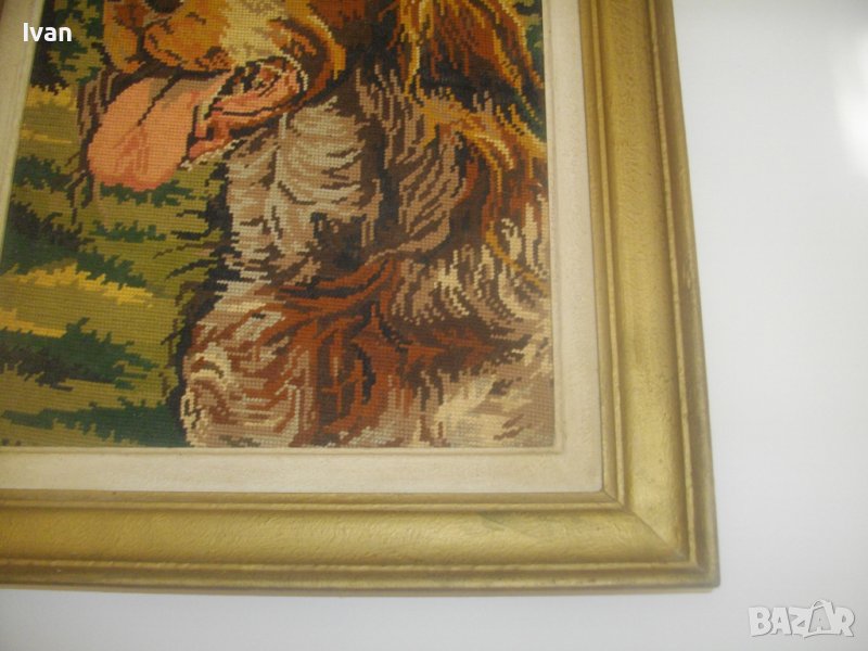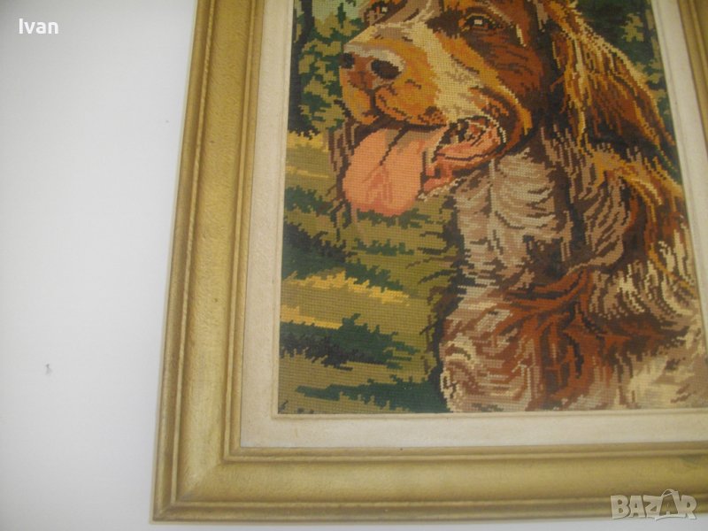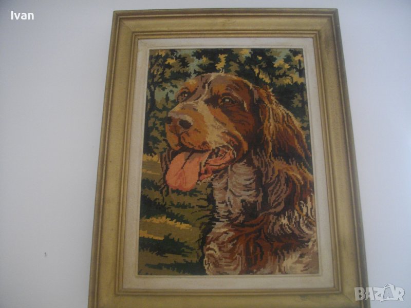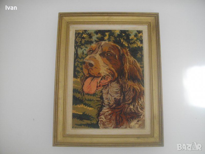 Почти нов,голям гоблен, с ефектно изображение на кафяво голямо куче,от породата Английски кокершпаньол-търсач на трюфели,на фон на гориста местност.