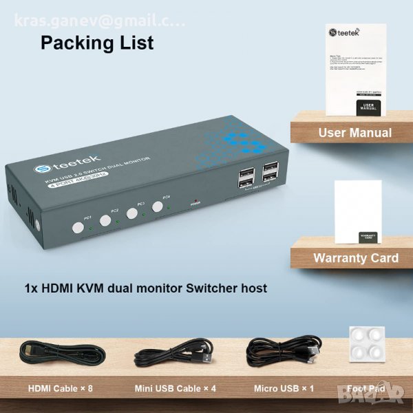 "Steetek" KVM превключвател HDMI двоен монитор 4 порта