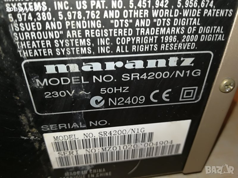 MARANTZ SR4200/N1G RECEIVER-ГОЛЯМА И ЯКА МАШИНА С ИЗХОДИ ЗА 5 КОЛОНИ-РАБОТИ ИДЕАЛНО ИМА КОЗМЕТИЧНИ ЗАБЕЛЕЖКИ САМО ПО ЛИЦЕВИЯ ПАНЕЛ ПРОТРИТО И КАБЕЛА ОТЗАД Е ВЪРЗАН ДИРЕКТНО БЕЗ БУКСА-ТАКА ПРИСТИГНА-от днес 28.02.22г пращаме със спиди или еконт с преглед и тест след превод на капаро за куриерската услуга поради зачестили некоректни потребители-поръчки само в тук в саита! по телефона и със смс не! краини цени! бартери не правиме! всеки ден нови неща-още 2-3 наши обяви тук
