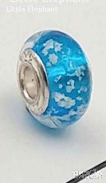 Сребърен елемент Пандора,светещо топче,колекция"Морано"-синьо/нов → Обява 37079159