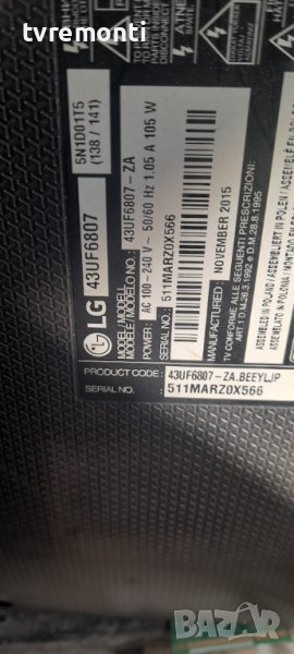 Main board EAX66427003 (1.0) for ,LG 43UF6807 дисплей LC430EGG-FHM1 Борда е гарантирано работещ Демонтиран от телевизор LG модел 43uf6807 със счупен дисплей LC430EGG-FHM1 тествана от нашия техник