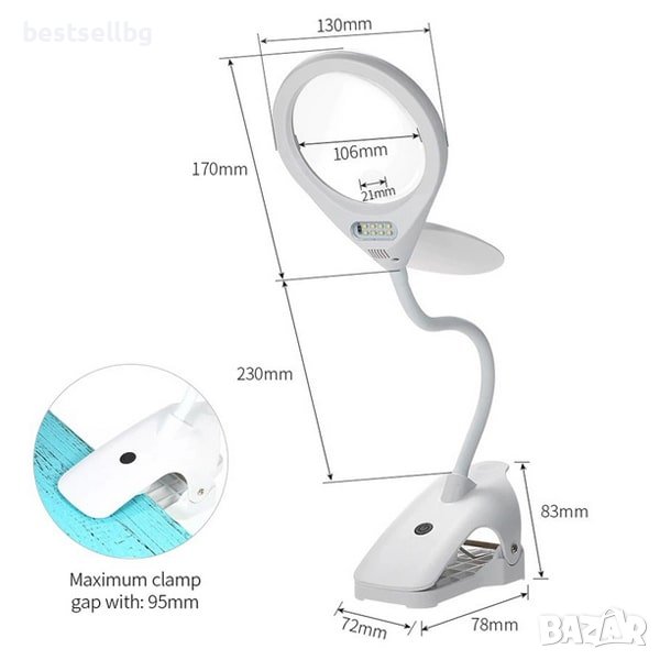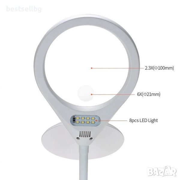 Настолната лупа се отличава с иновативен дизайн и може да бъде прикрепена към почти всяка повърхност